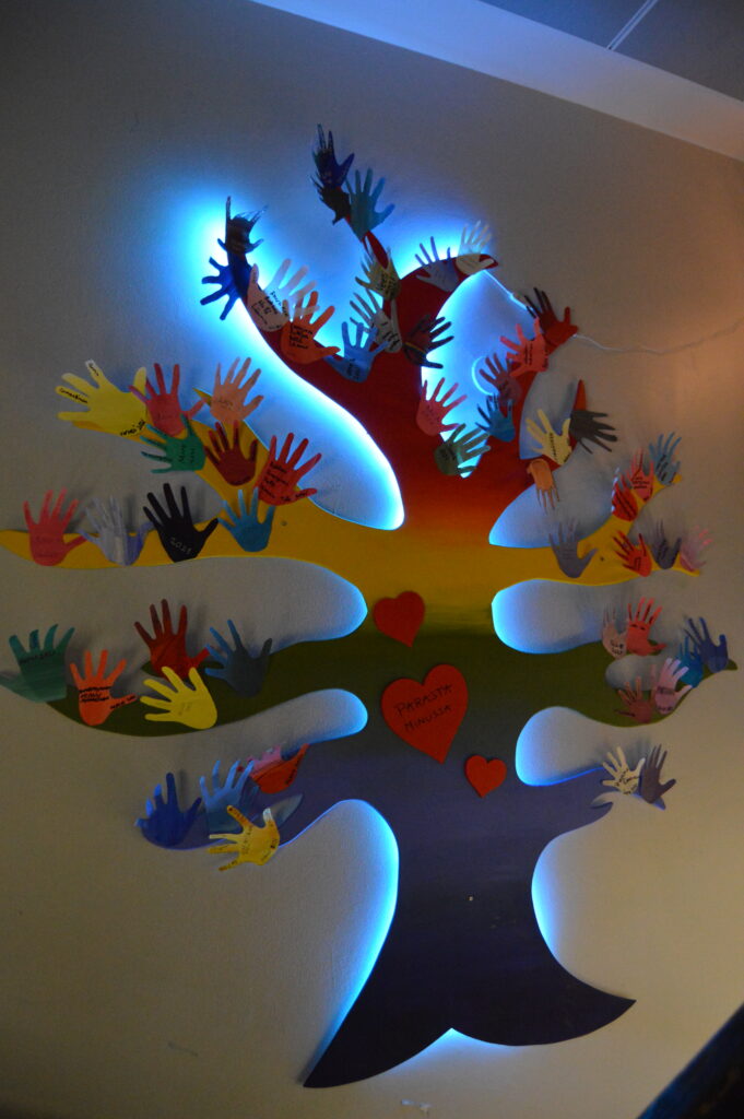 Alla kuva syksyllä 2021 koordinoimastani Parasta minussa-yhteisötaideprojektista Kinnulan yläasteelle ja Terveyskeskukseen.